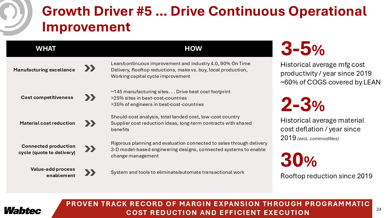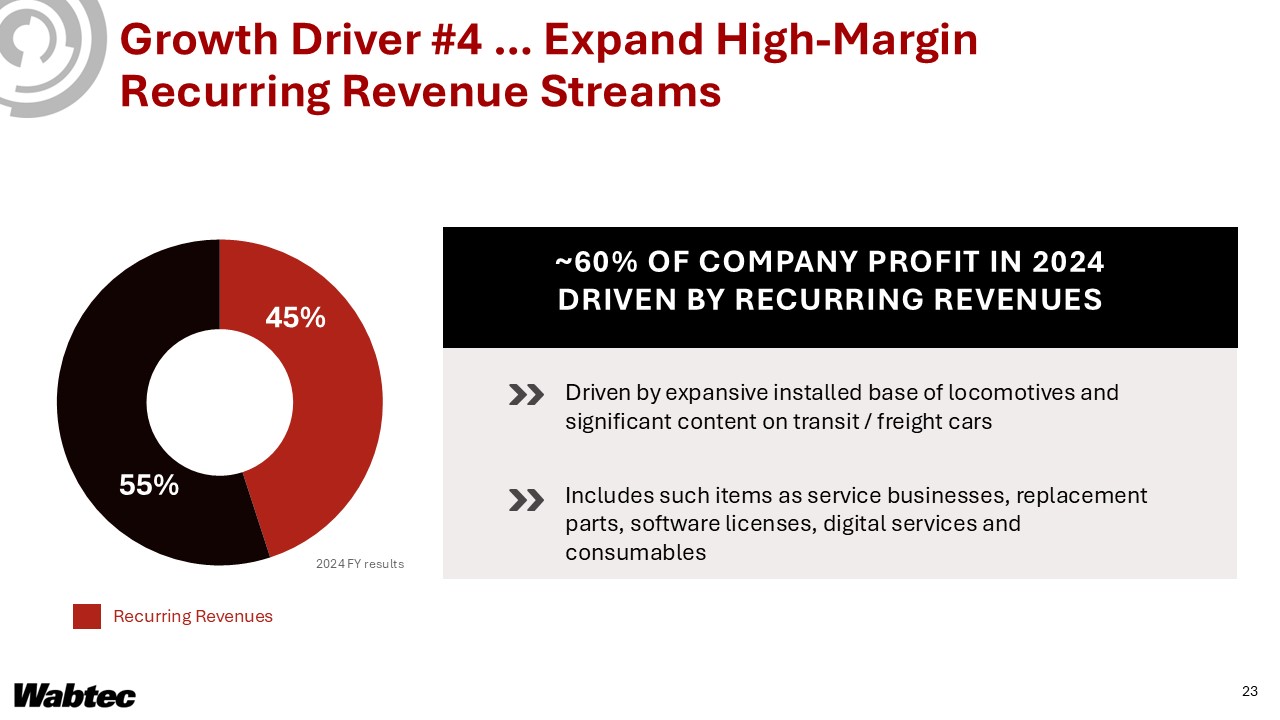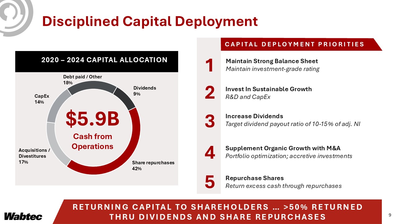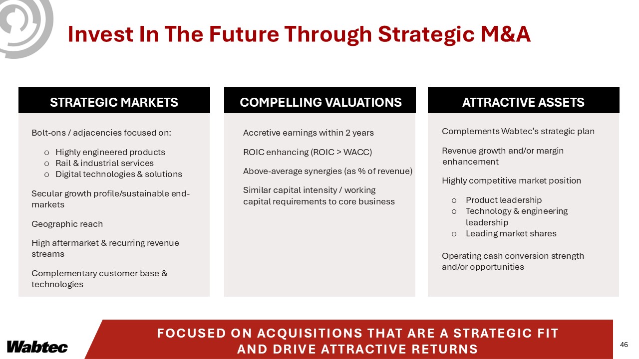 in February 2025); Wabtec’s expectations for evolving global industry, market and macro- economic conditions and their impact on Wabtec’s business; anticipated drivers of growth and margin expansion; planned capital deployment priorities; synergies